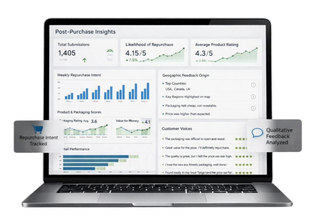 Customer contact details, survey responses, product feedback, retailer breakdowns. All captured in real time on a custom dashboard and shareable reports. Real insight from the people actually buying your products. You own the data and can act on it immediately.