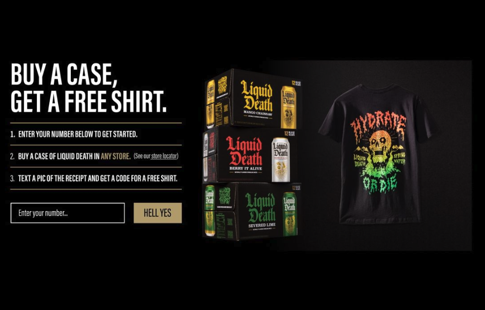 In categories where options are similar, a clearly communicated reward can help simplify the decision at the point of purchase. It also allows brands to creatively stand out on the shelf, with rewards that are both lucrative and exciting for the shopper (see Liquid Death example below).